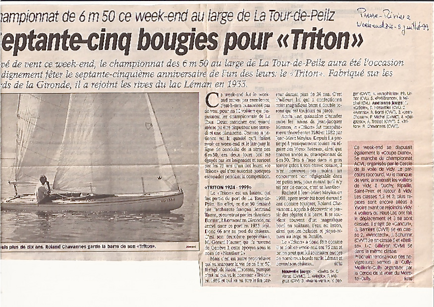 Beaucoup plus tard, en 1936, nous décidâmes avec M firmenich, industriel à Genève et yachtman très connu sur le Léman de participer aux jeux olympiques de Kiel dans la série des 6mJI. Là, nous fîmes d’excellents résultats en gagnant le classement de Gênes avec plusieurs premiers prix.